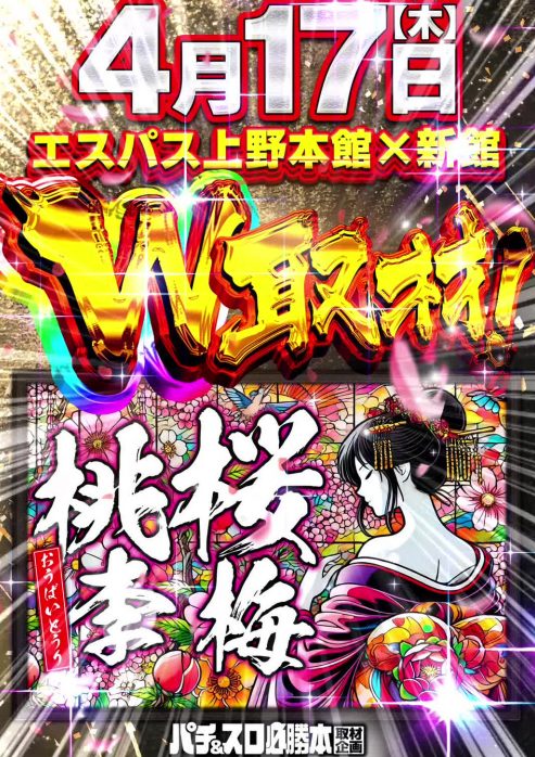 エスパス上野本館の7の日は取材が入ることが多く、好成績を残しがちな1日です。4/17は本館&新館が桜梅桃李同時開催となりました。
