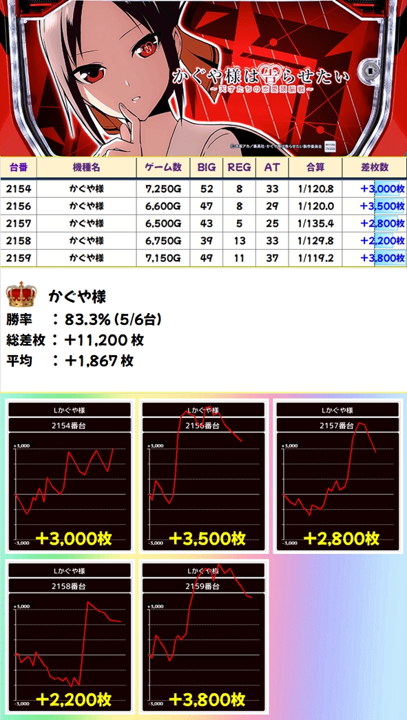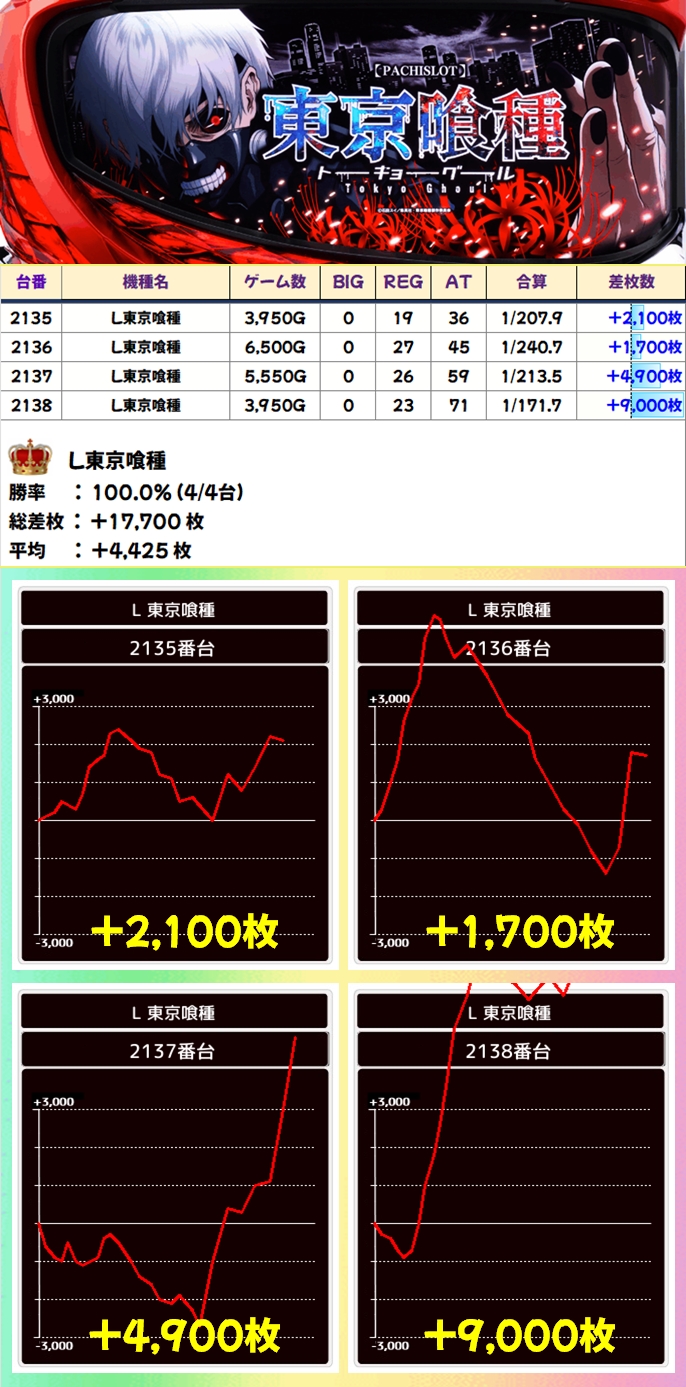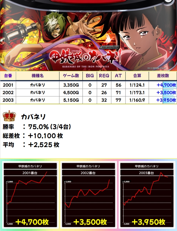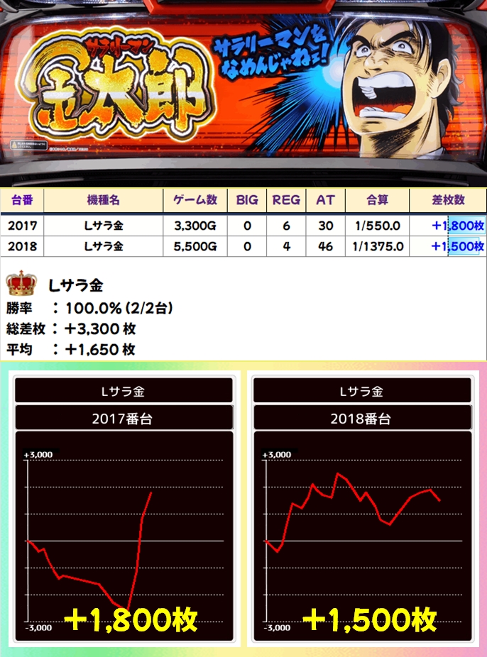至る所に優秀台があり総差枚は17万枚超のプラス!