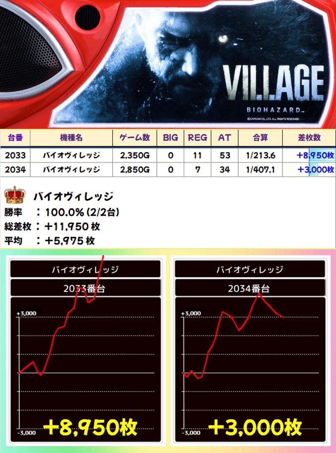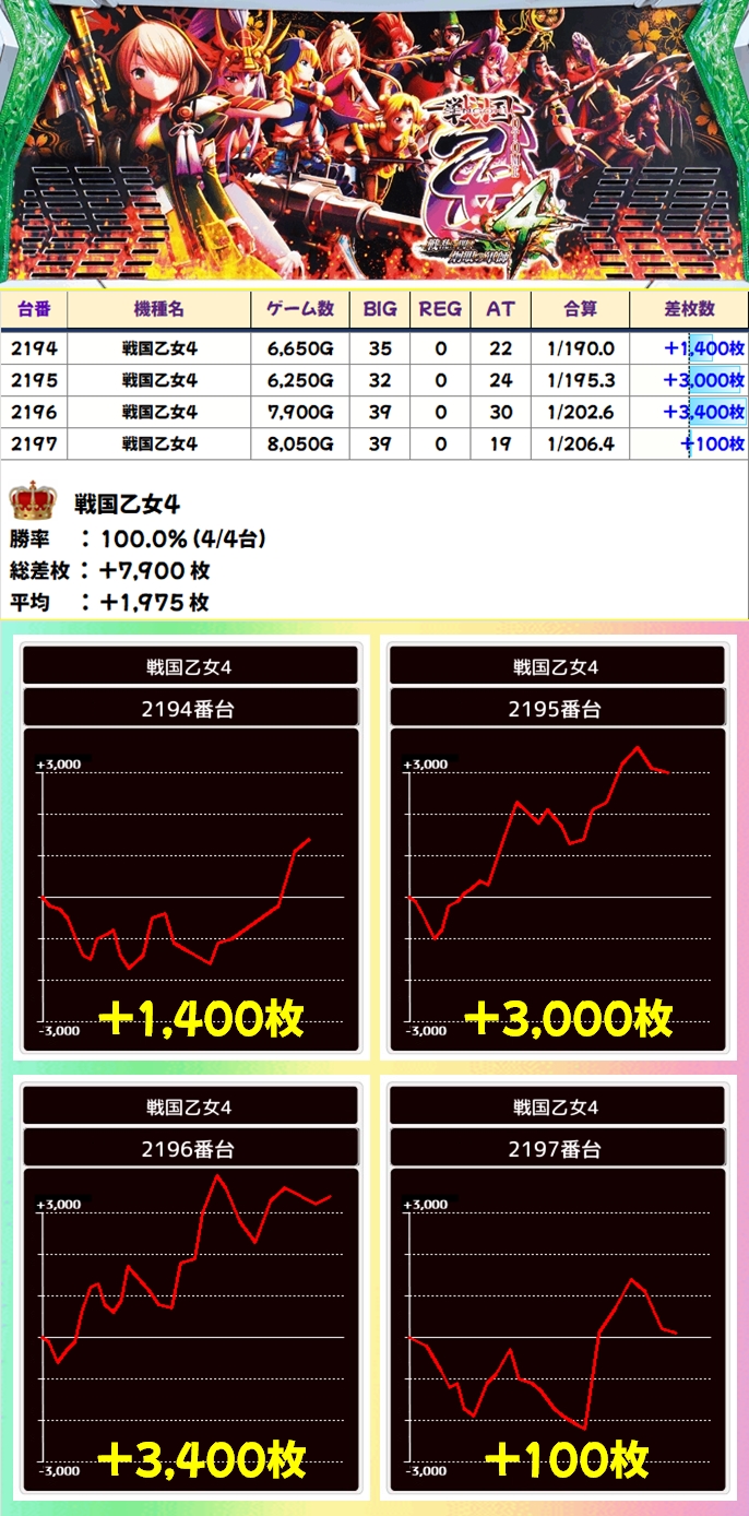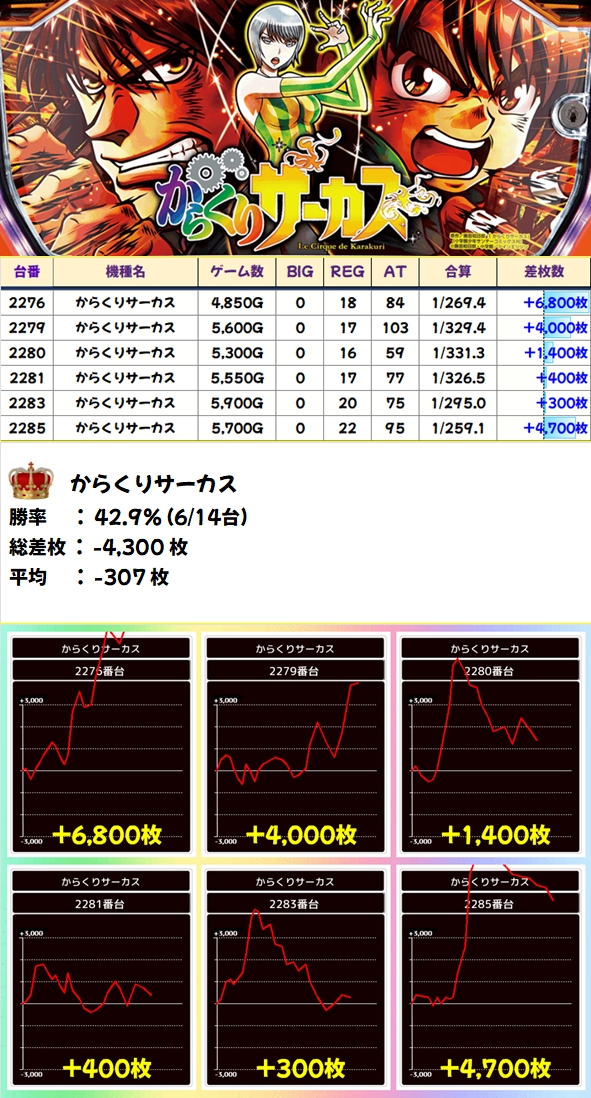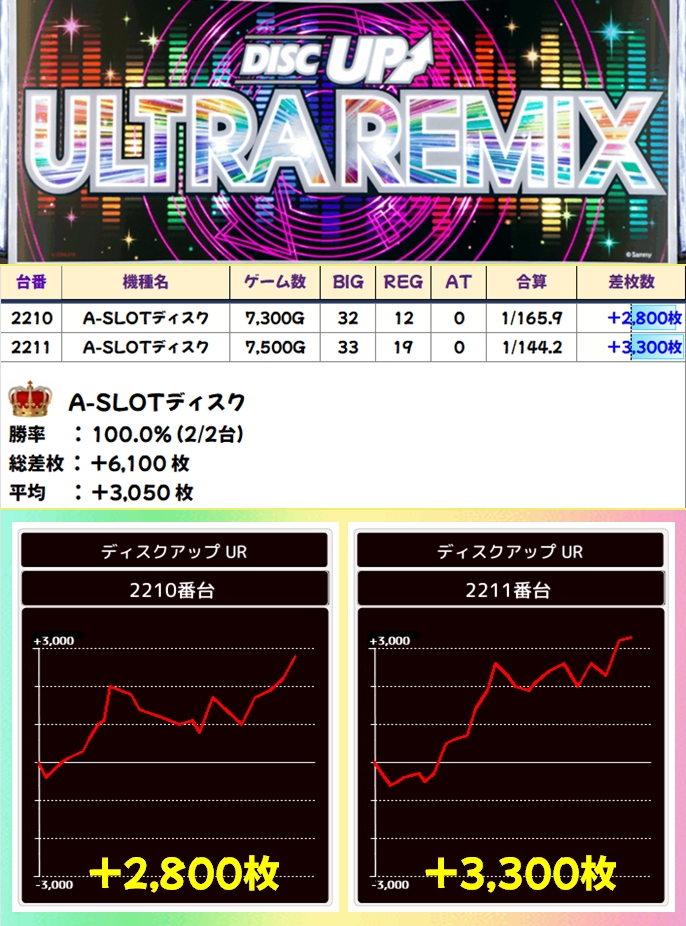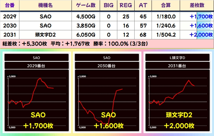 出玉面ではバイオやディスクURが優秀でしたが、全機種マイナス台ナシの優秀成績!メインドコロが狙えなかった際は少台数攻めも一手!