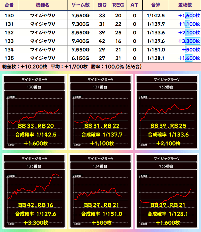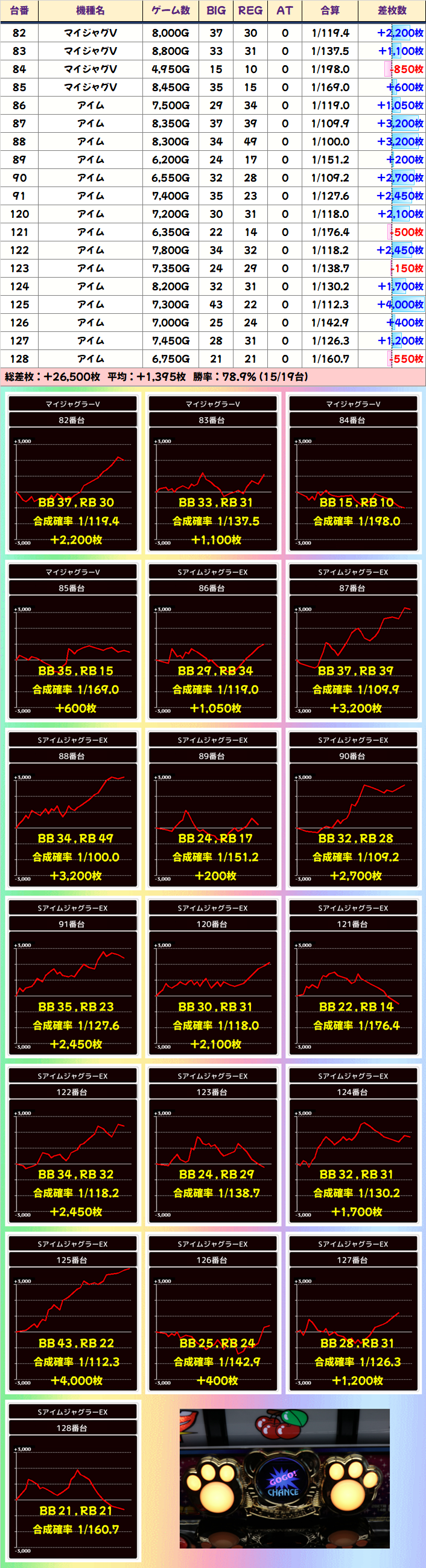 もちろん全台系以外にもお宝台は多数。メイン機種からノーマル・30パイまであらゆるところに優秀台がありました! 全台系の様相をなしていなくてもしっかり設定判別をして、お宝台を捨ててしまわないようにしていきたいところです。