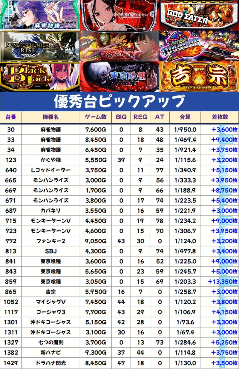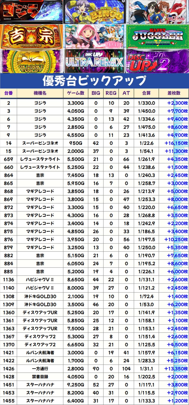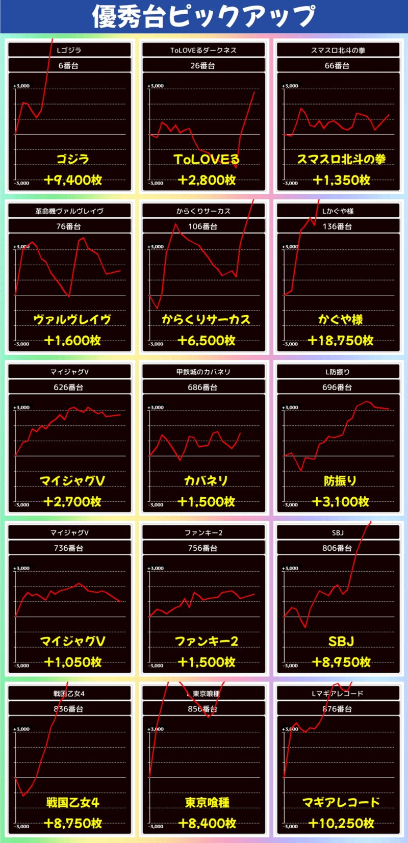 ここでは各機種の優秀台をピックアップしていきます!データをチェックしてみてください!