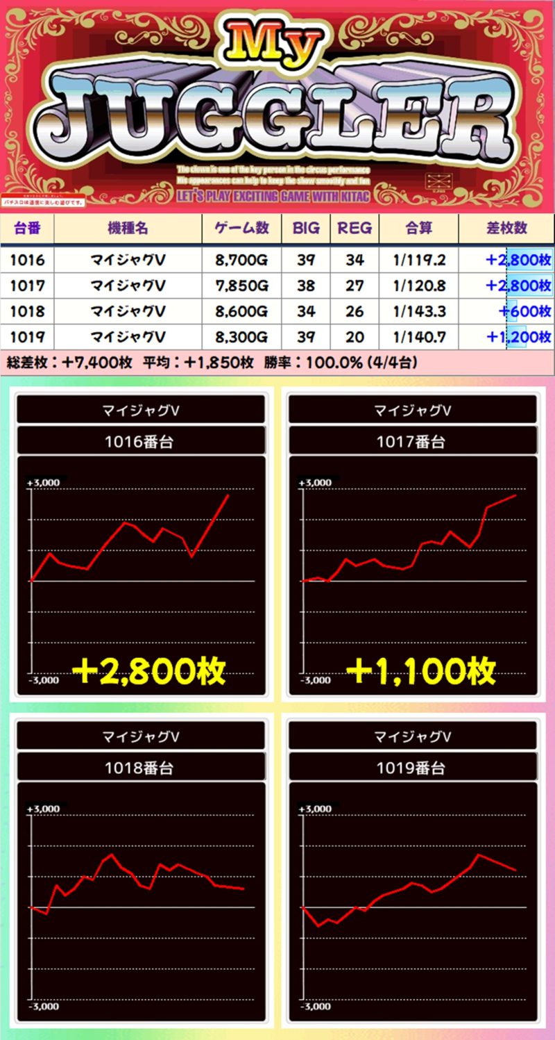 【4台並び】マイジャグV(1016-1019番台)⏩Ave+1,850枚