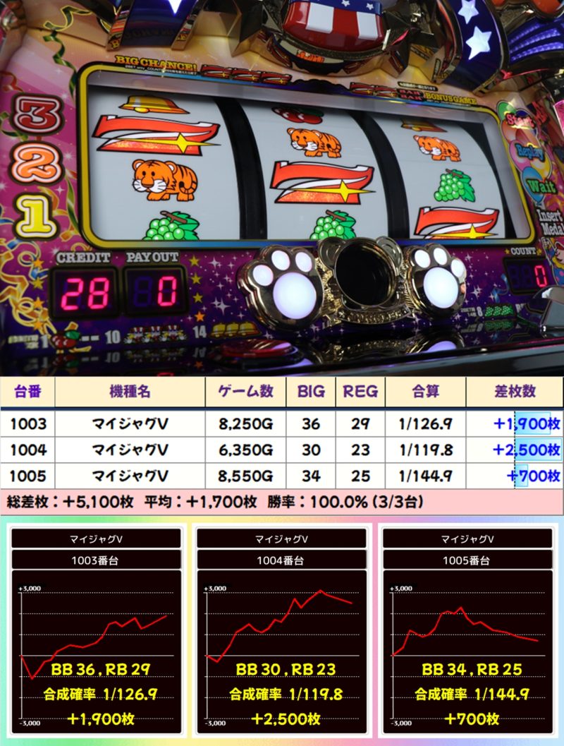 【3台並び】マイジャグV(1003-1005番台)⏩Ave+1,700枚