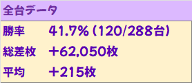 結果が素晴らしかったので先出ししますが、平均+215枚&総差枚+6.2万枚を達成!
