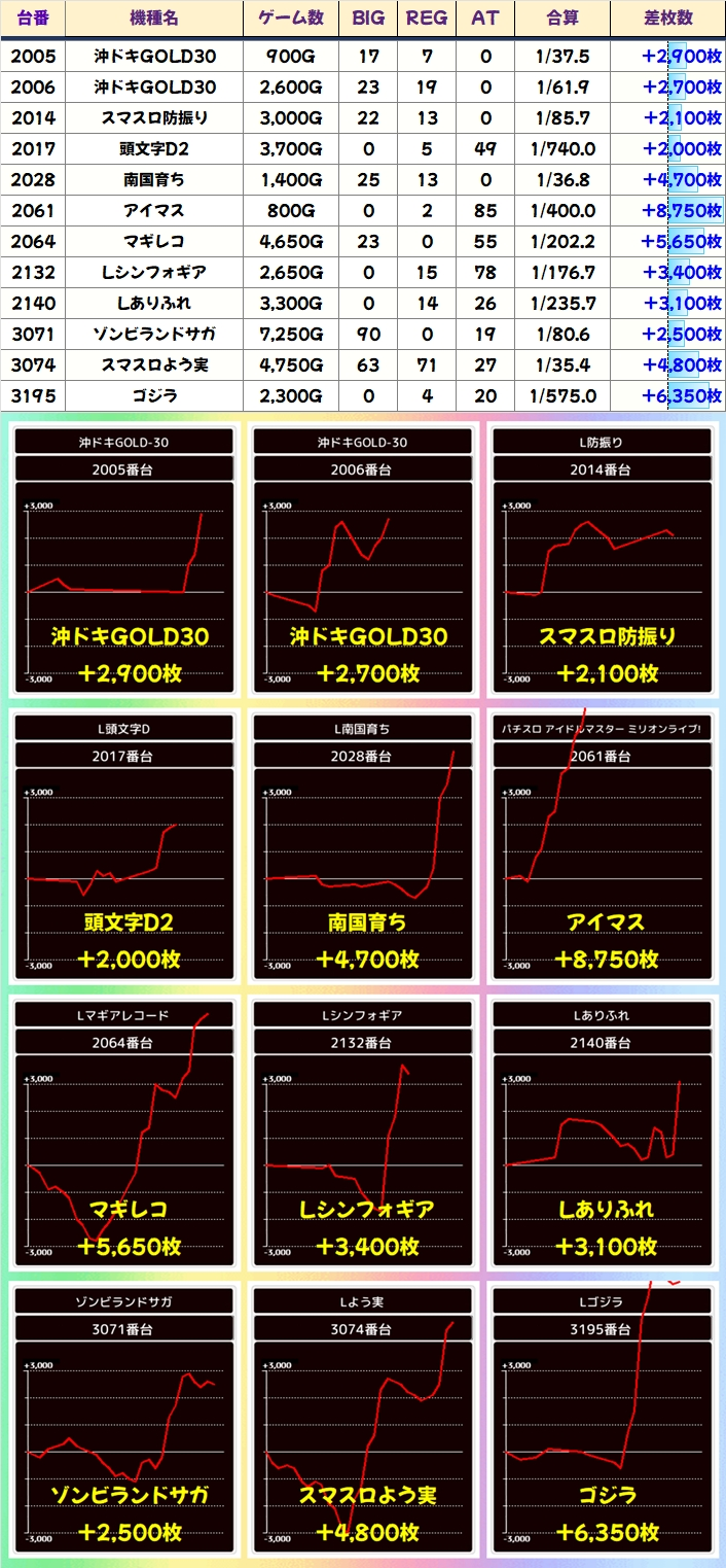 さらに、2台機種の「ゴブスレ」と「エウレカART」が全台系濃厚の結果になっていました。