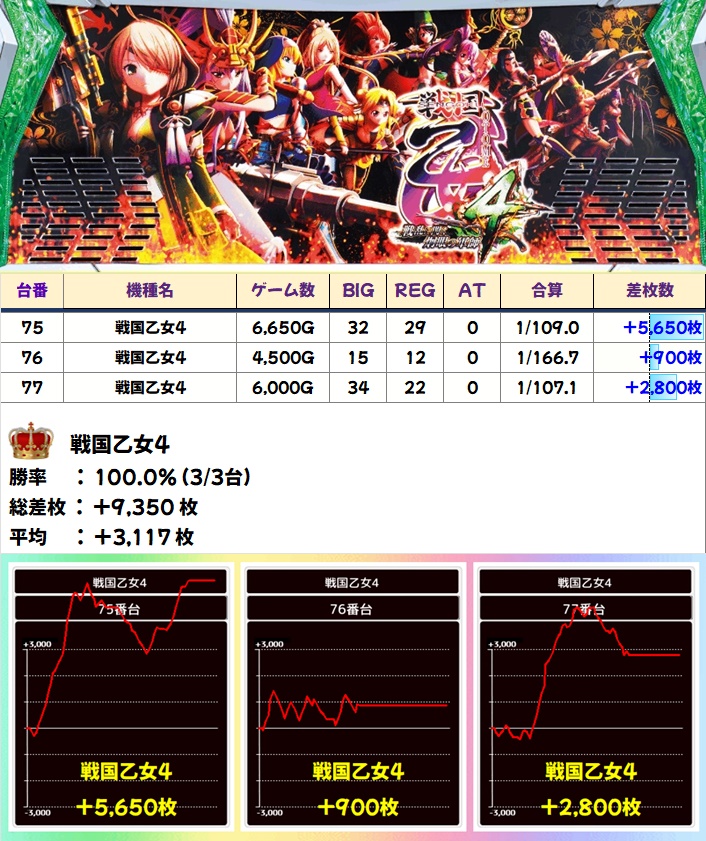 その他【戦国乙女4】【このすば】【サンダーVL】【ホウオウ天翔30】も全台系候補で間違いなし!どれも綺麗な右肩上がりで高挙動となっていました!