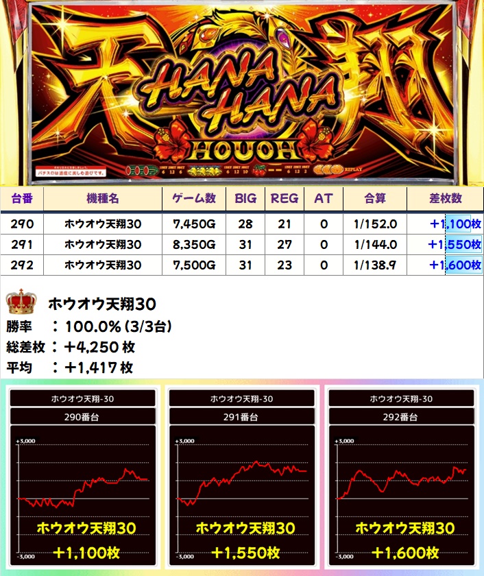 🌈ホウオウ天翔30(3台)【平均+1417枚】