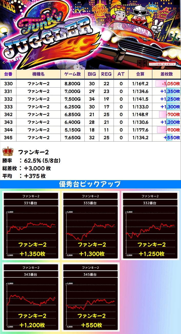 もう一つの推すすめ機種である【SBJ】からは+7000枚オーバー台を確認!