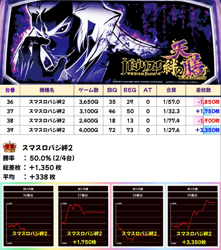🌈スマスロバジ絆2(4台)【平均+338枚】