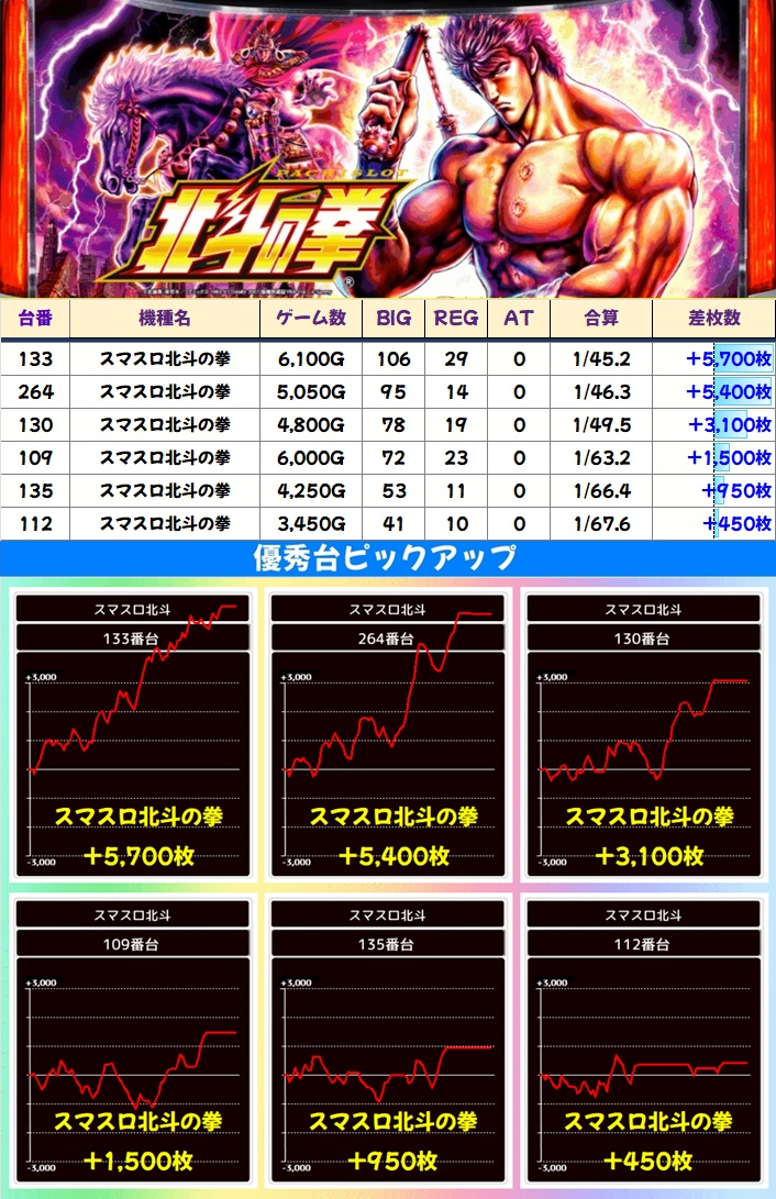 そして忘れてはいけない看板機種の北斗からも優秀台を多数確認!超優秀各演出の報告もあっただけに、やはり北斗も使われているのは間違いなし!