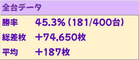 総差枚は約+7.4万枚&台平均+187枚と、今回もしっかりとプラス差枚の好結果に!