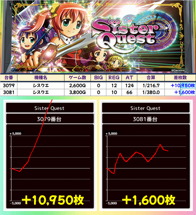 万枚が飛び出した「シスクエ」を筆頭に全機種から+2000枚以上の優秀台を確認!