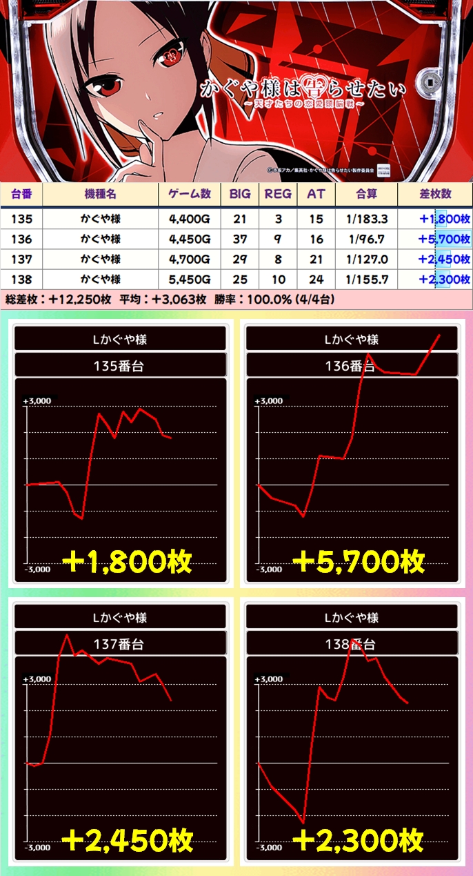 そのため、次回の日曜日も毎日オススメ機種の並びに加え、「かぐや様」も並びを意識するようにしましょう。