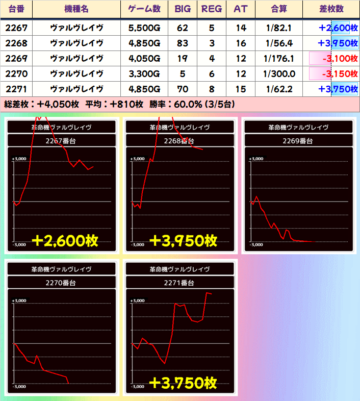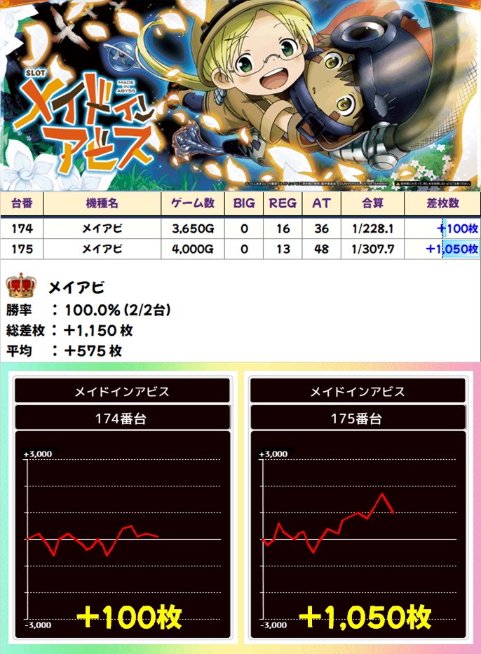 総差枚+160200枚、平均差枚+367枚と好成績! 全台系がこれだけの数投入されているなら当然の結果ですね。最近はとにかく機種またぎの列全が多いため、これからも列を意識した立ち回りが勝利の近道となりそうです!