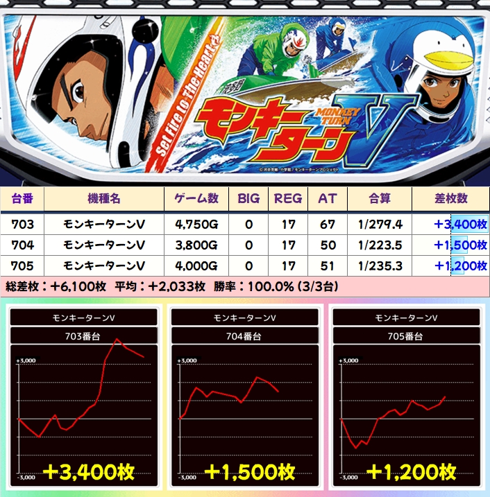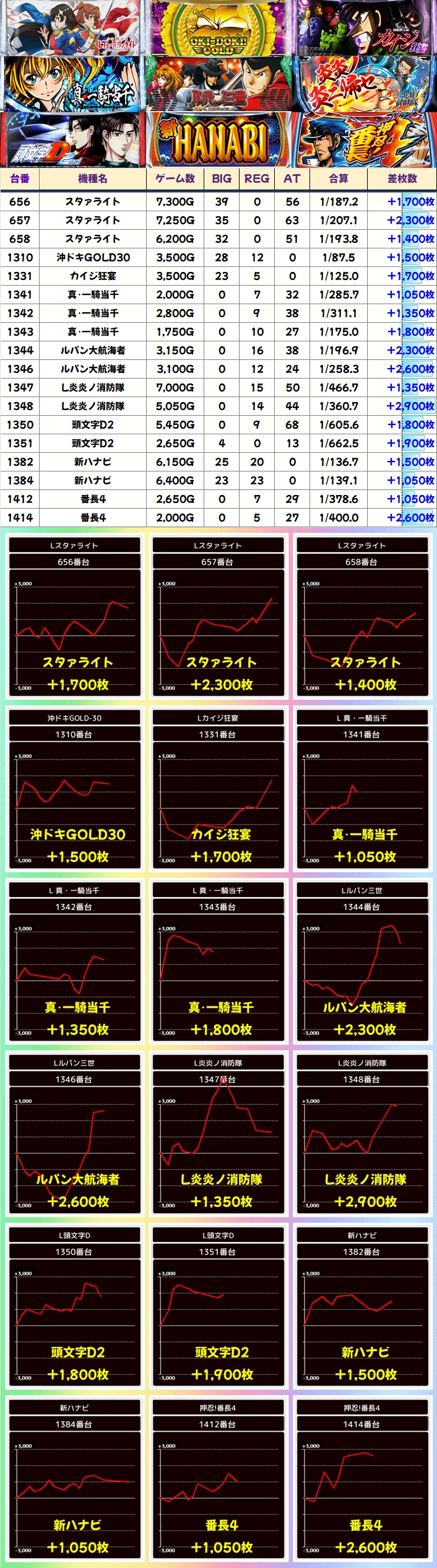 こちらも総差枚+4.3万枚、平均+1514枚と大幅プラスを記録しており、「アイム」と同じく島全体から全台系の雰囲気を感じることができたのではないでしょうか?