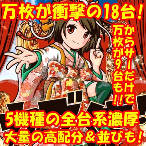 この日は「万枚が驚愕の18台、+5000枚以上が51台、+3000枚以上が91台」と各所で盛り上がりまくり!