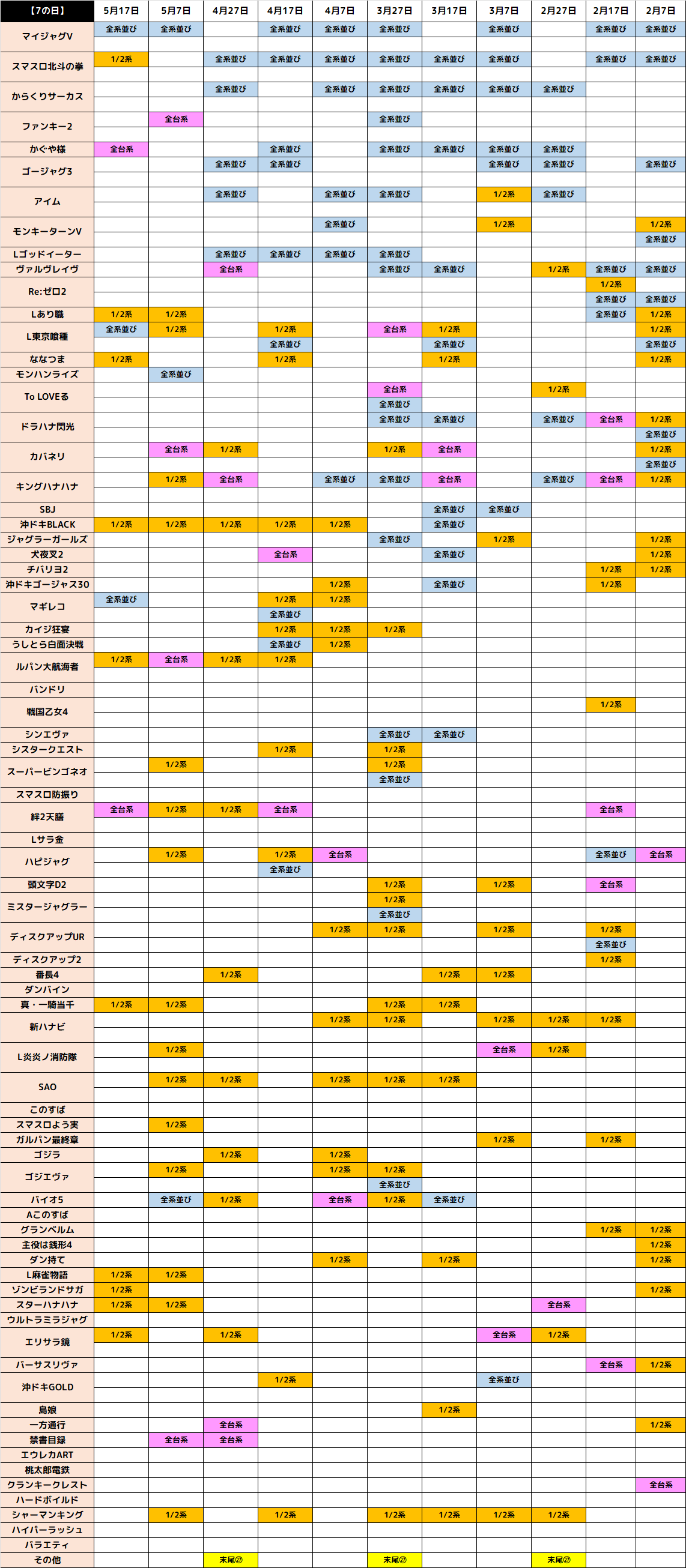 ⑦の日は下記の通り毎回大量の仕掛けに期待できますが、激熱7daysが重なる27日は特に多数のお宝台に期待できます。