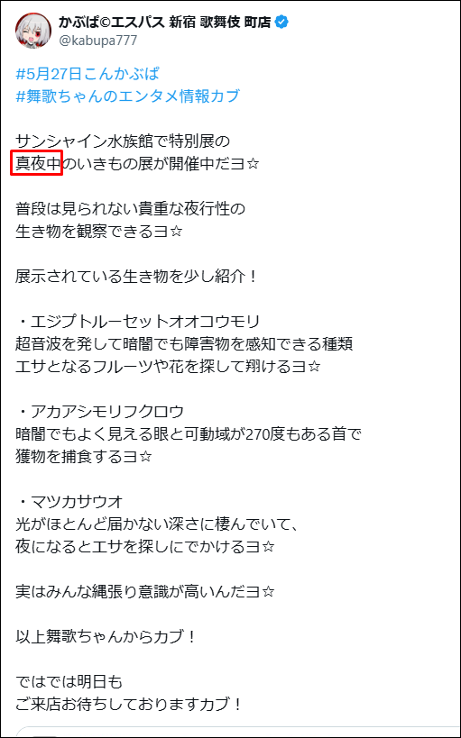 前日の21時頃に配信されるかぶぱちゃんのポストには必ず仕掛けのヒントが隠されており、この日の結果を基に読み解くと、今回もポストの文章内に仕掛けのヒントを確認することができました。
