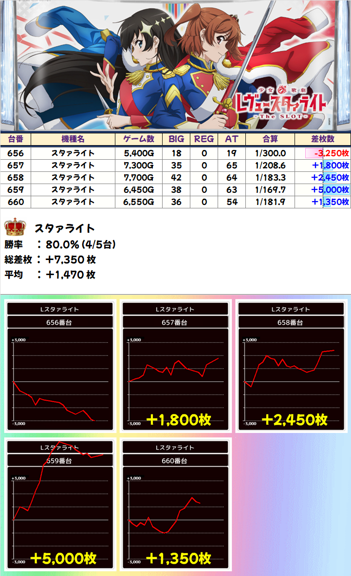 スタァライト(4/5台+)⏩Ave+1,470枚