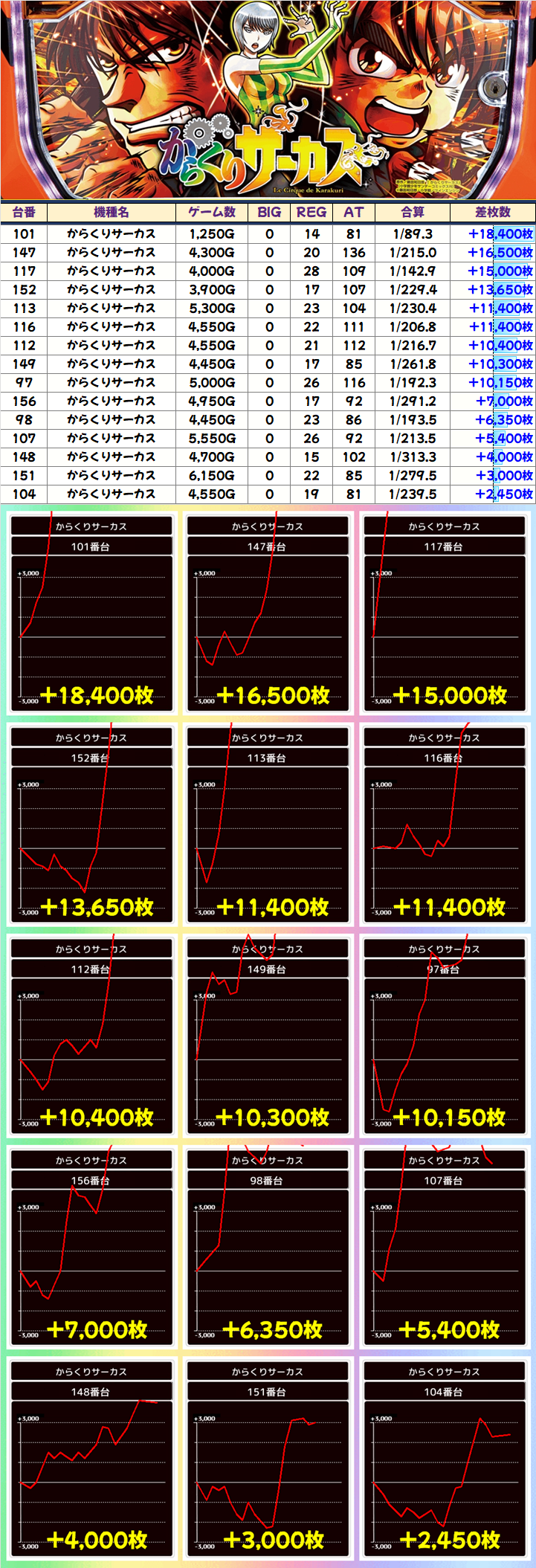 ポスト関連機種かつ毎日オススメ機種でもある全37台の「からくりサーカス」の全台系濃厚!