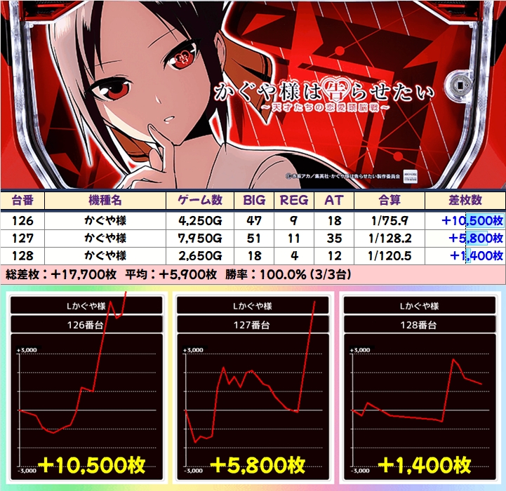【3台並び】かぐや様① (126-128)平均+5,900枚