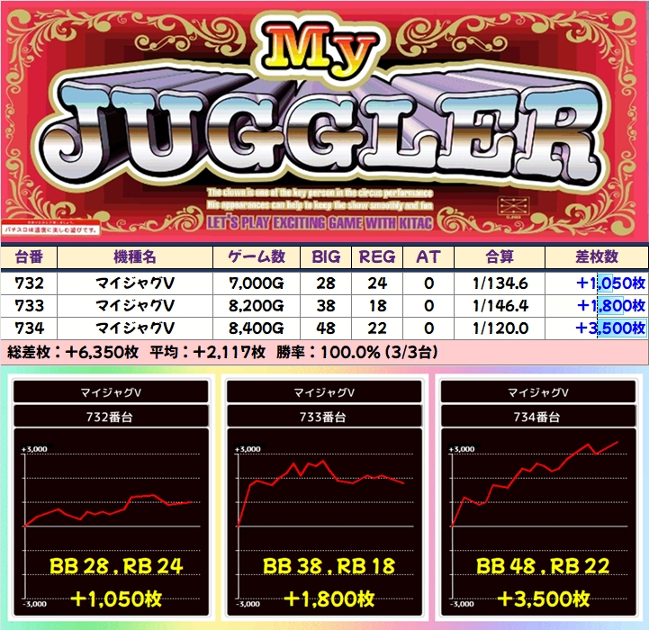 結果が素晴らしかったので先出ししますが、平均+約300枚&総差枚+約22万枚を達成!