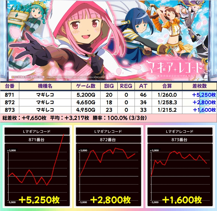 【3台並び】マギレコ (871-873)平均+3,217枚