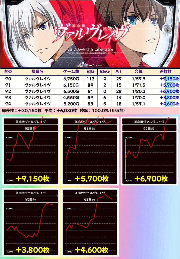 【5台並び】ヴァルヴレイヴ(90-94)平均+6,030枚