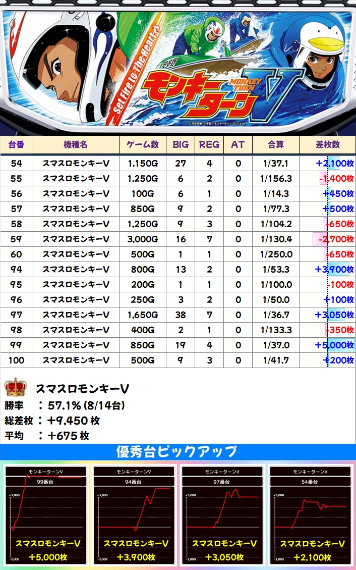 🌈スマスロモンキーV(14台)【平均+675枚】