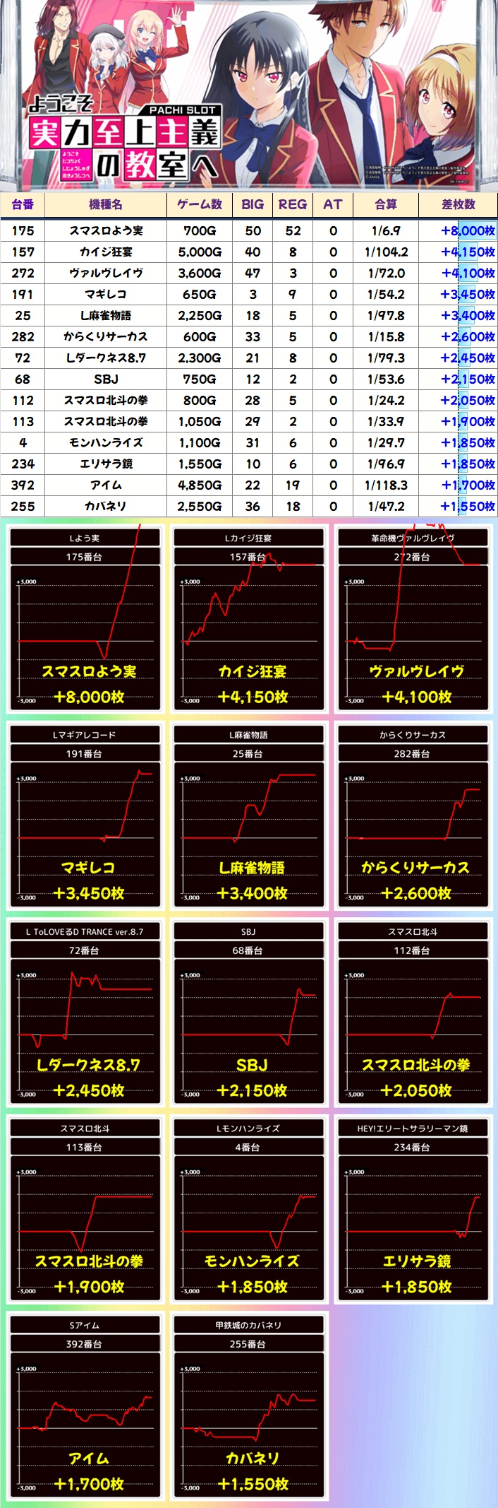 もちろん単品優秀台も多数出現!やはり前日の据え置きを中心とした優秀台を多数確認できました!