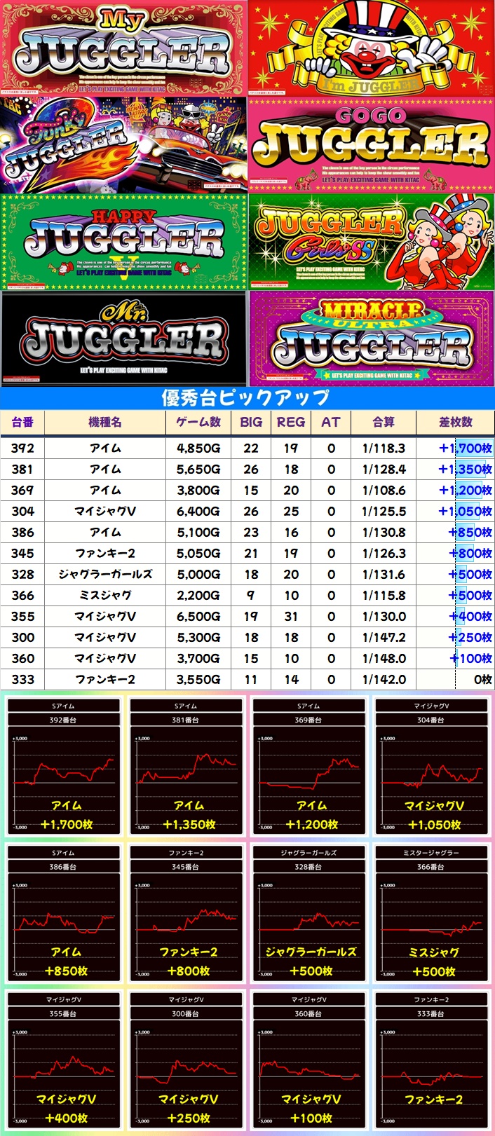 ジャグ系も前日の据え置きメインで優秀台が多数アリ!
