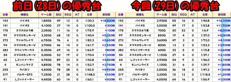 そして、前日の据え置き狙いもモチロン狙い目!29日はこの法則を頼りに立ち回るのが鉄則です!
