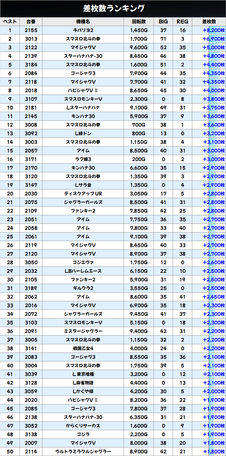 仕掛け箇所以外にも+1000枚超の単品優秀台が大量!最新台のBT機やギルクラ2などにもしっかり優秀台アリ!
