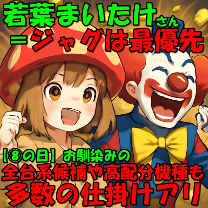 そして8日と言えばモチロン【ジャグ系】は最優先!もちろんジャグだけではなく、お馴染みの全台系候補や高配分機種も潜んでいるので、とにかく全体に注目です!