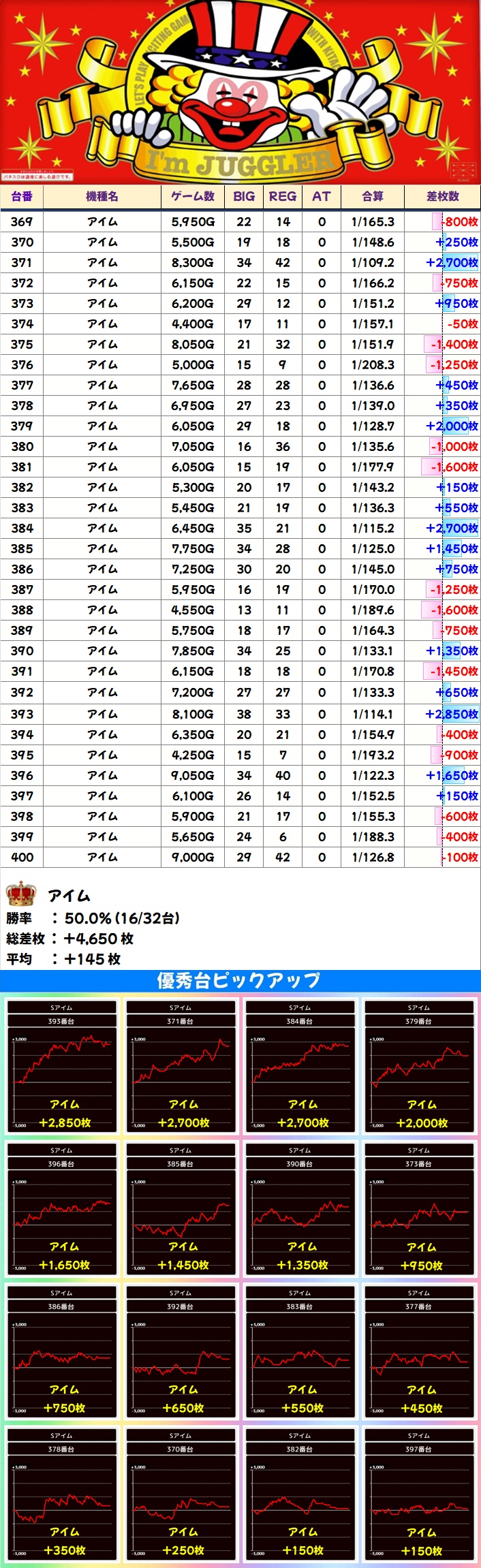 多台数のマイジャグ&アイムからは多数の優秀台アリ!さらに【ウルトラミラジャグ】【ミスジャグ】【ジャグガ】は全台系候補だった可能性大!