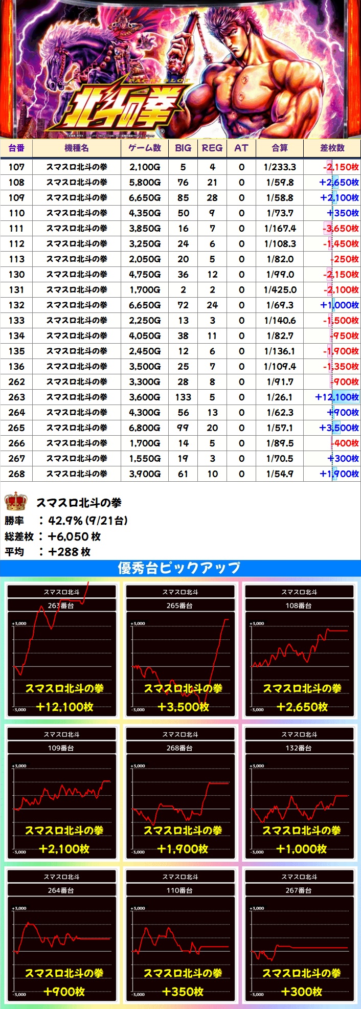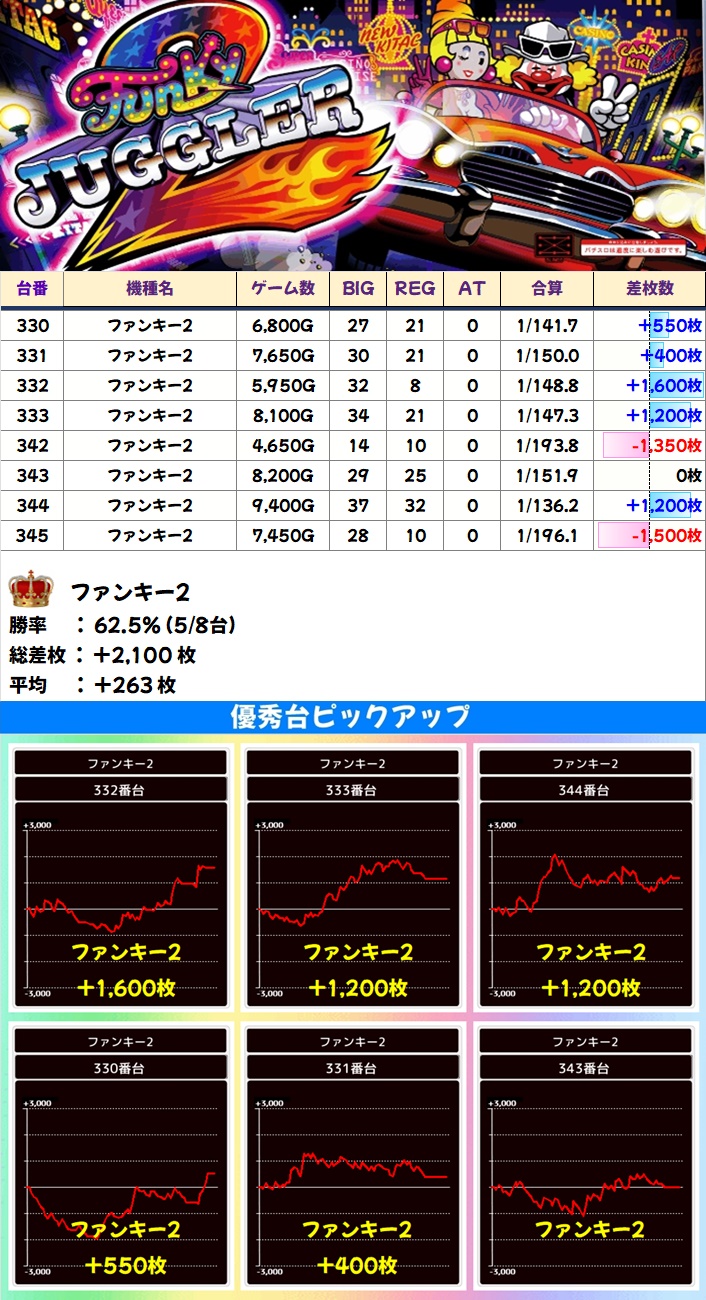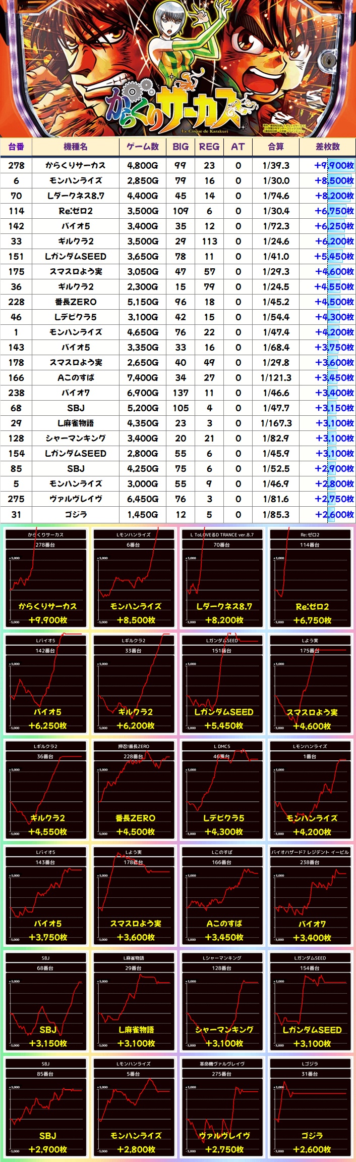 もちろん仕掛け以外の単品優秀台も多数あり!幅広い機種で優秀台を確認できました!