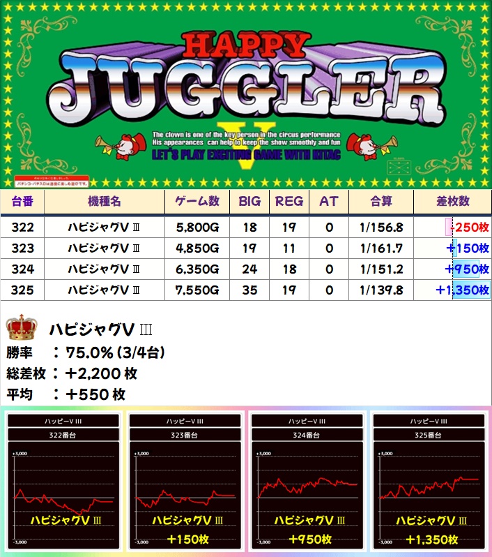 🌈ハピジャグVⅢ(4台)【平均+550枚】