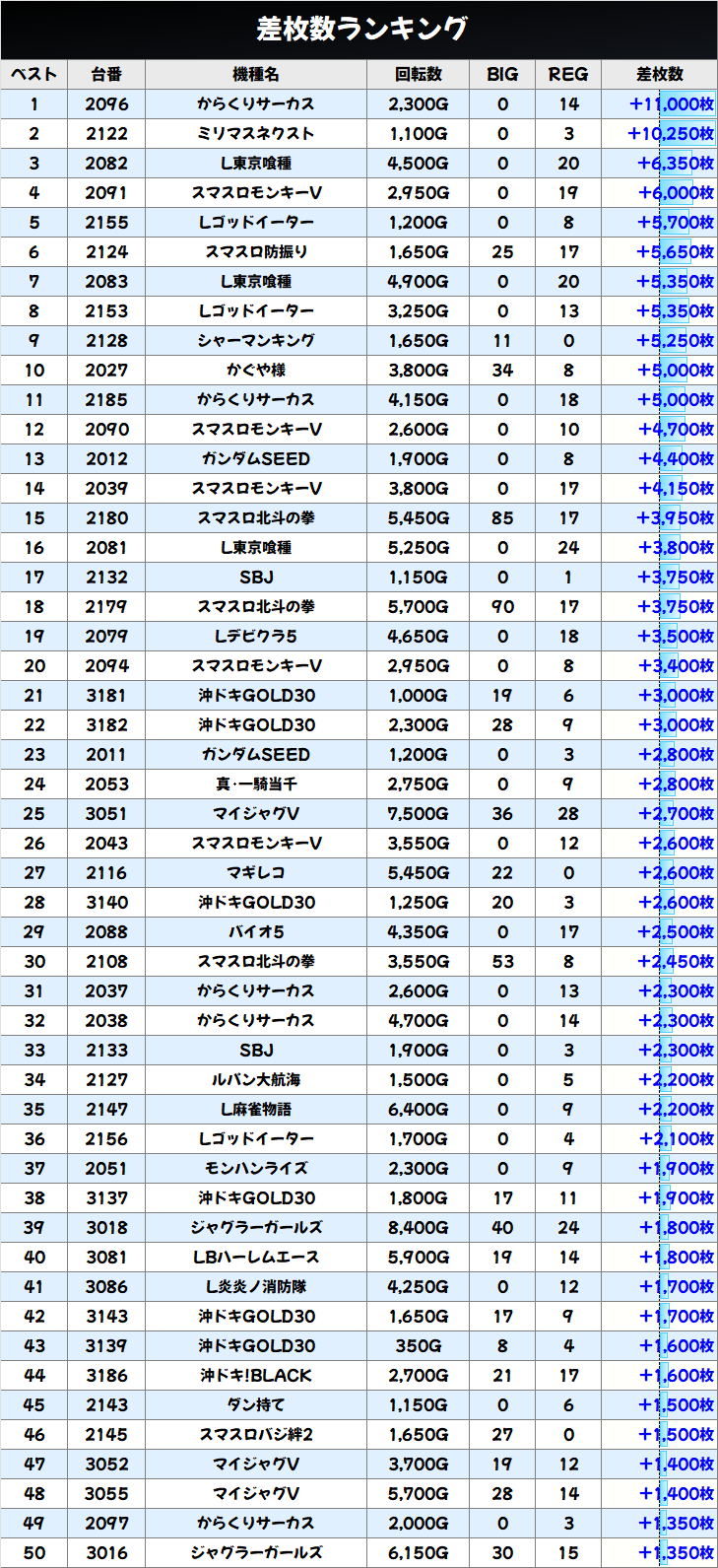 今回の優秀機種は防振りでしたが、稼働がいま一つで出玉は伸びず。結果を残している台はあるので、しっかり看破すれば大量出玉を獲得できるチャンスはありましたよ。