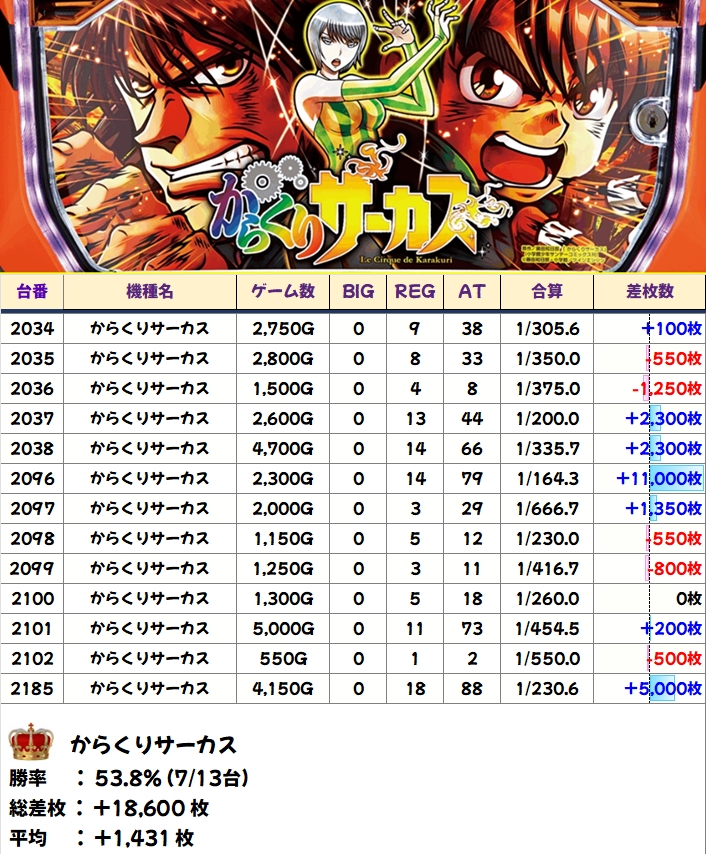 1/2系は4機種と複数あり、からくりからは万枚超も!ジャグラーガールズはノーマルですが、人気スマスロ機種を中心に仕掛けられていたように感じます