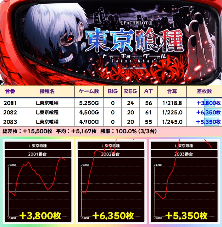 この日は万枚超2台、40台近くが+2000枚超を獲得!今回も並び仕掛けが数多く確認できたので、以降も全台系や高配分を意識するのはもちろん好調台を見つけたらまずはサイドから狙いましょう。特にジャグ系は並びを意識!