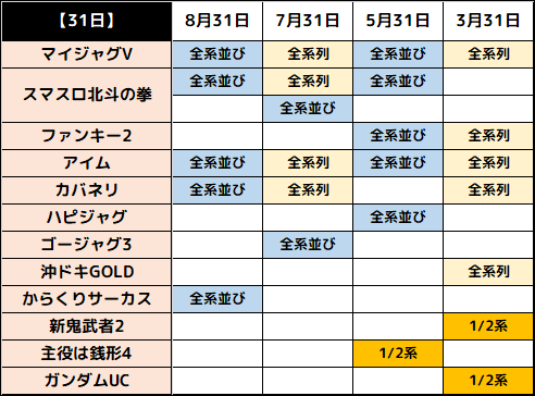 8月31日(木)|エスパス新宿歌舞伎町|31日のサイの日はジャグラーシリーズ推し! マイジャグVとアイムは高設定の並びと単品仕掛け、その他のジャグラー3機種にも多数の単品が! スーパーENJOY機種にも仕掛けアリ!
