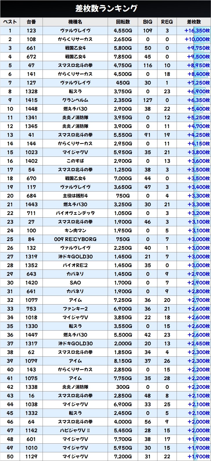 差枚数ランキングと島図チェック!