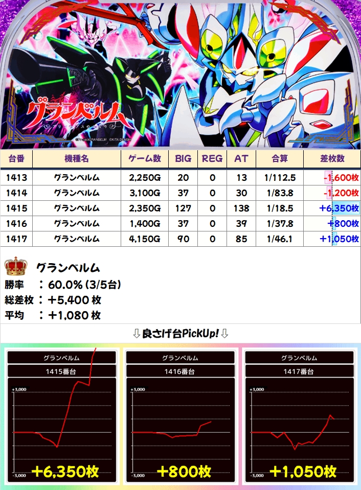 【1/2系】グランベルム(5台):台平均+1080枚