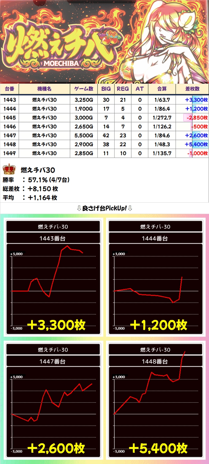 なお、この日は31日ということで④がまつわる数字(31日→3+1=④)になっており、④台設置の燃えチバはまつわる機種に該当していました。
