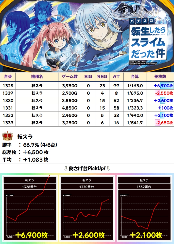 【1/2系】転スラ(6台):台平均+1083枚
