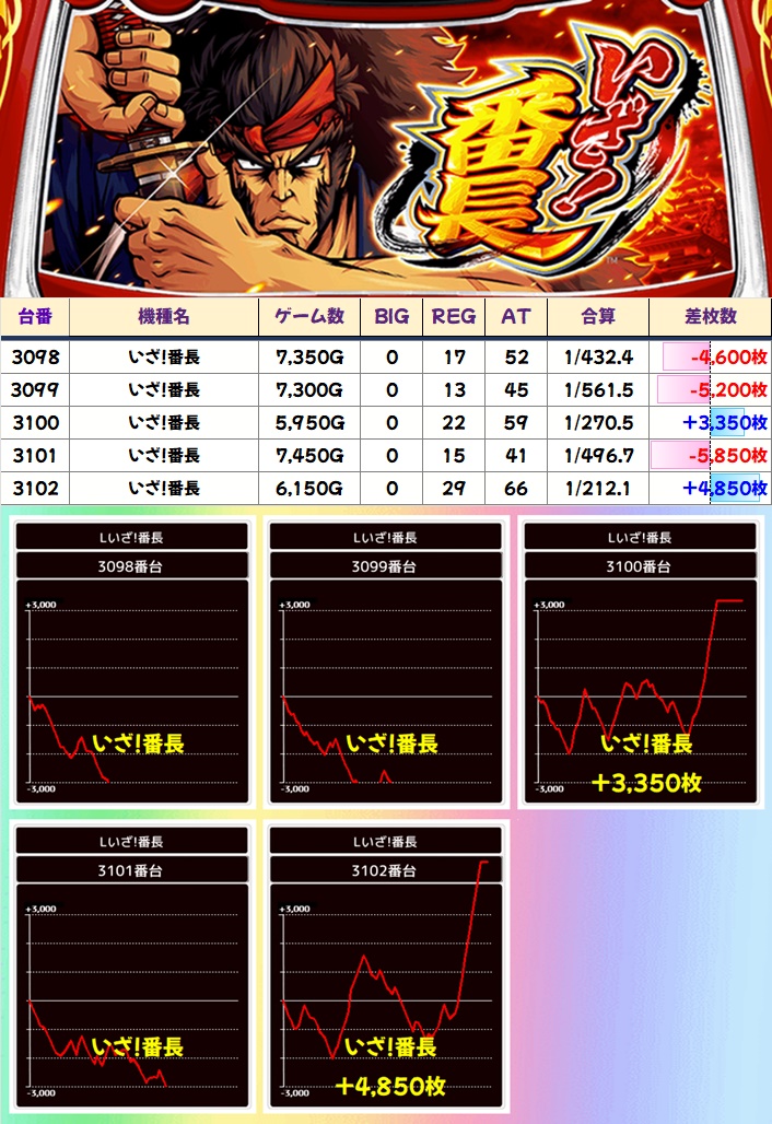 合同全台系の【ヴァルヴレイヴ】からは2台マイナスとなってしまいましたが、プラス台はどちらも+4500枚以上と好結果に!