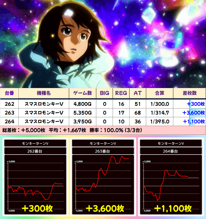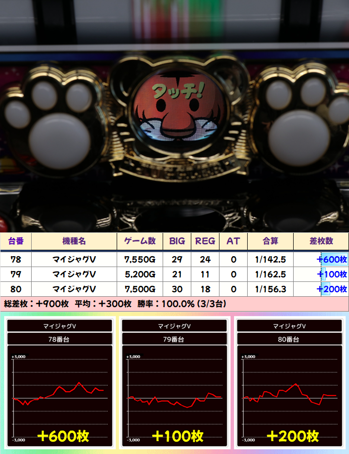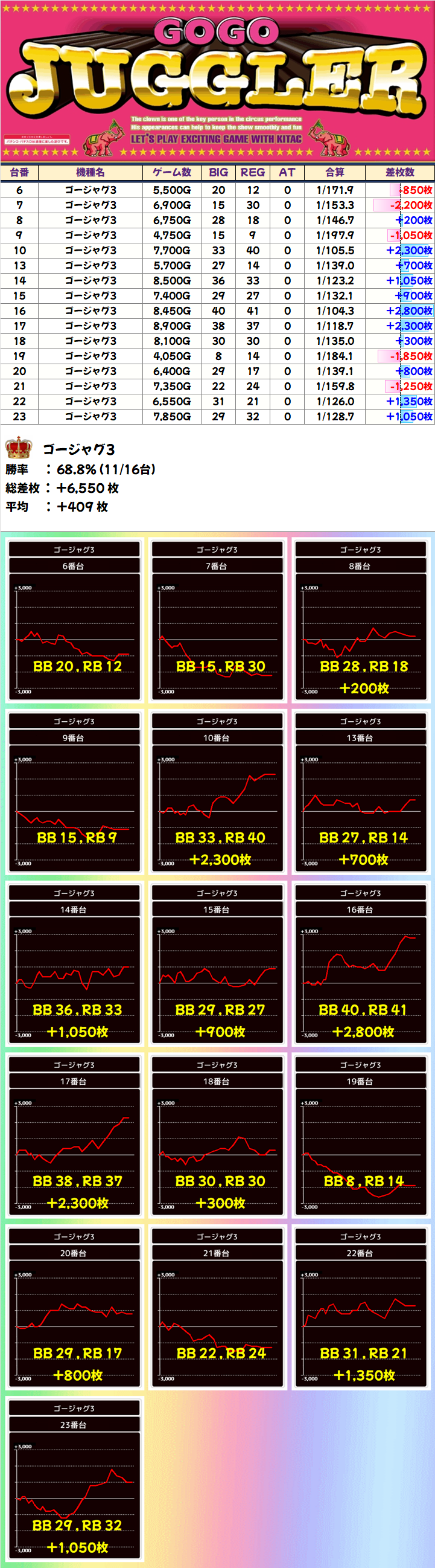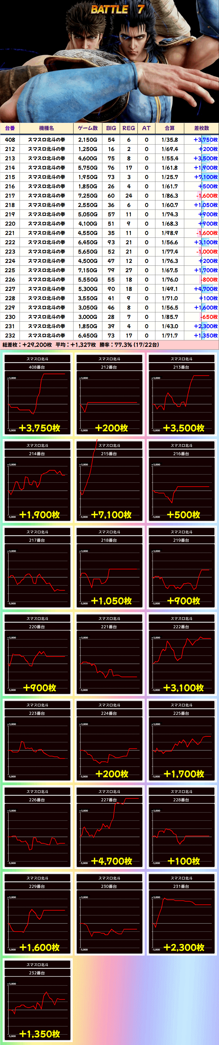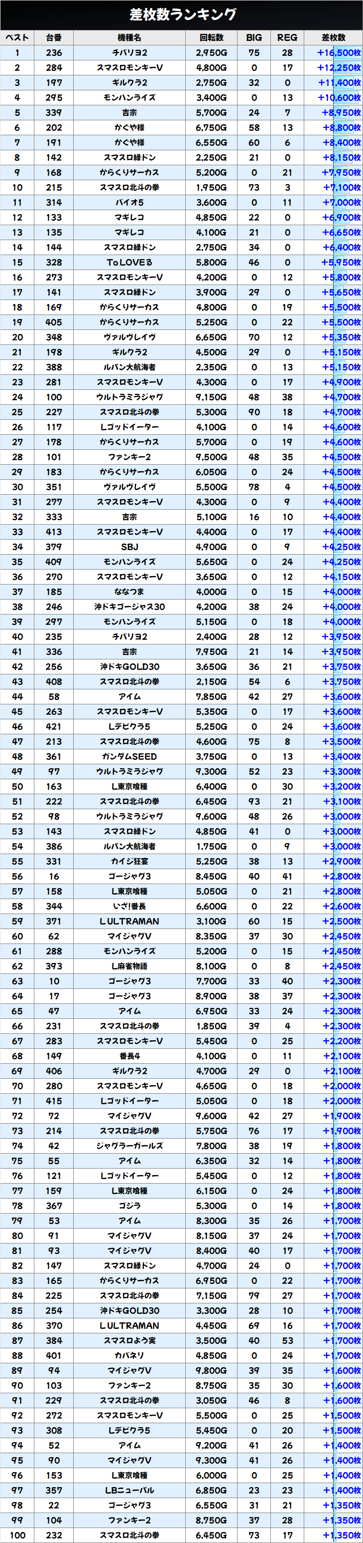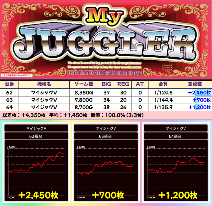 +8150枚を筆頭に半数の4台が+3000枚以上としっかり結果を残していました!