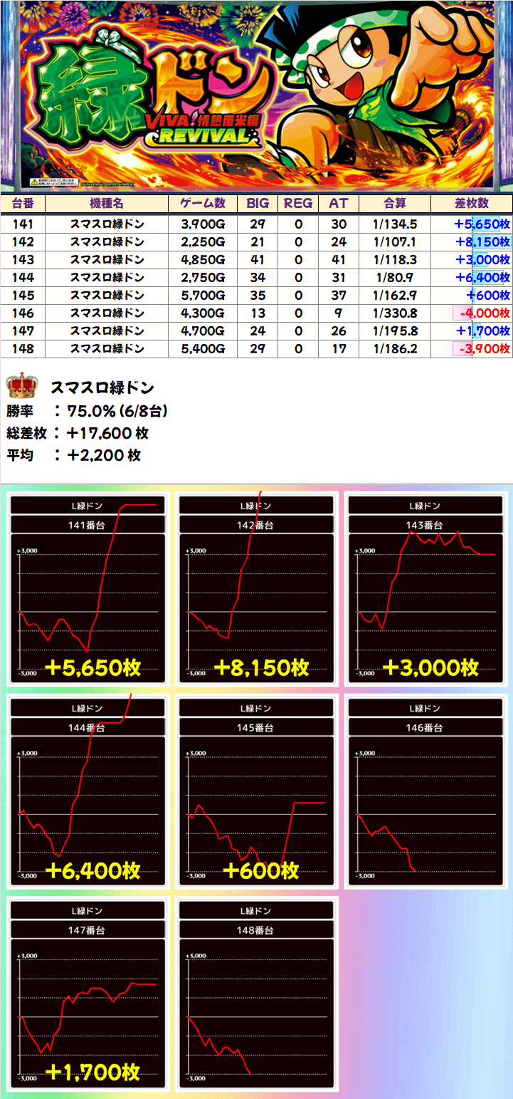 スマスロ緑ドン(6/8台+)⏩Ave+2,200枚