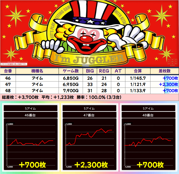 【3台並び】アイム①(46-48)⏩Ave+1,233枚