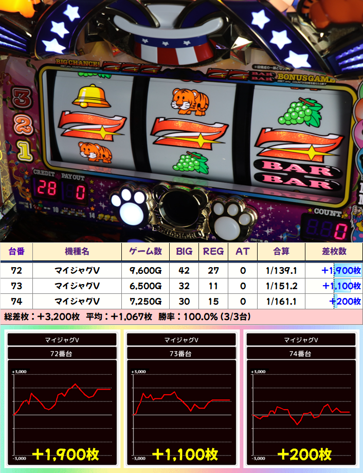 【3台並び】マイジャグV②(72-74)⏩Ave+1,067枚